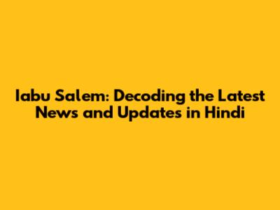 Iabu Salem: Latest News And Updates In Hindi