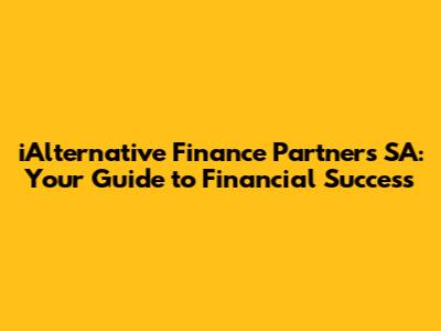 Hey there, finance enthusiasts! Ever heard of iAlternative Finance Partners SA? If not, you're in for a treat. This article is your ultimate guide, designed to break down everything you need to know about this intriguing financial entity. We'll dive into what they do, how they operate, and why they might be a game-changer for your financial journey. Get ready to explore the world of alternative finance and discover how iAlternative Finance Partners SA could be the key to unlocking your financial goals.