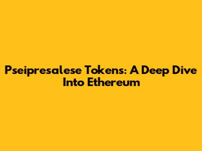 Pseipresalese Tokens: A Deep Dive Into Ethereum