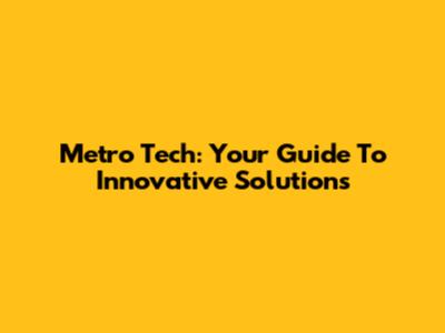 Metro Tech: Your Guide To Innovative Solutions
