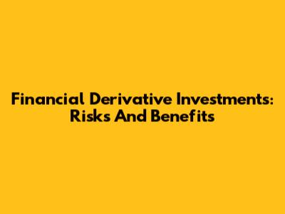 Financial Derivative Investments: Risks And Benefits