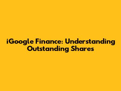 Hey guys! Let's dive into something that might seem a bit complex at first: iGoogle Finance Outstanding Shares. Don't worry, we'll break it down into easy-to-understand chunks. This concept is super important if you're trying to understand how a company is doing financially, whether you're a seasoned investor or just starting out. So, grab your coffee, and let's get started. We'll be looking at what outstanding shares actually are, why they matter, and how they relate to iGoogle Finance and your investment decisions. This article will explain what outstanding shares are, how they are calculated, and why they are important for investors to understand. We'll also look at how iGoogle Finance, which, sadly, is no longer available as of 2013, used to provide this crucial information, and where you can find similar details today. Understanding outstanding shares is a fundamental part of analyzing a company's financial health, and it impacts everything from share price to earnings per share (EPS). Knowing the number of shares outstanding allows investors to calculate important financial metrics and make informed decisions about whether to invest in a particular company.