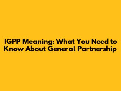 IGPP Meaning: What You Need To Know About General Partnership