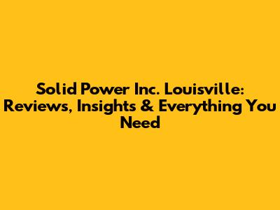 Solid Power Inc. Louisville: Reviews, Insights & Everything You Need