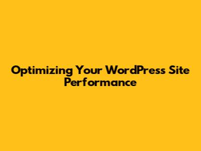 Optimizing Your WordPress Site Performance