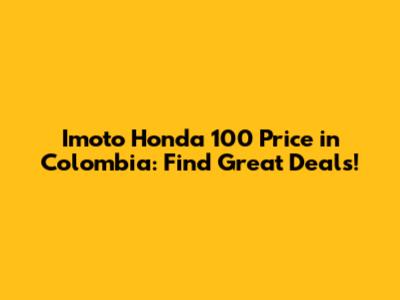 Imoto Honda 100 Price In Colombia: Find Great Deals!