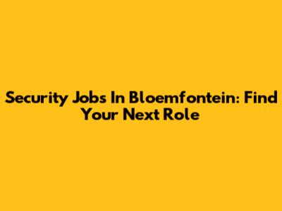Security Jobs In Bloemfontein: Find Your Next Role