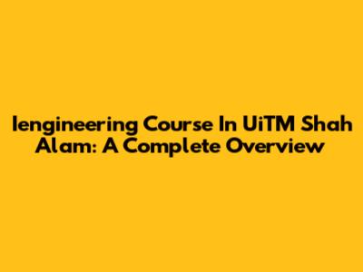 Iengineering Course In UiTM Shah Alam: A Complete Overview