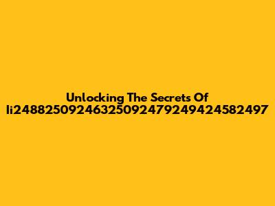 Unlocking The Secrets Of Ii24882509246325092479249424582497