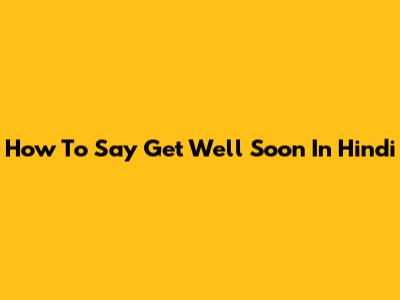 How To Say 'Get Well Soon' In Hindi
