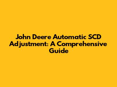 John Deere Automatic SCD Adjustment: A Comprehensive Guide