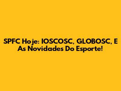 SPFC Hoje: IOSCOSC, GLOBOSC, E As Novidades Do Esporte!