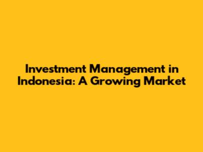 Investment Management In Indonesia: A Growing Market