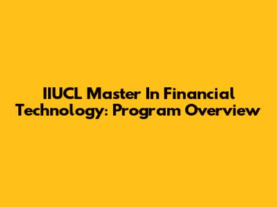 IIUCL Master In Financial Technology: Program Overview