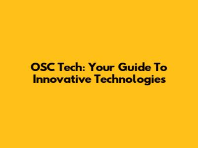 OSC Tech: Your Guide To Innovative Technologies