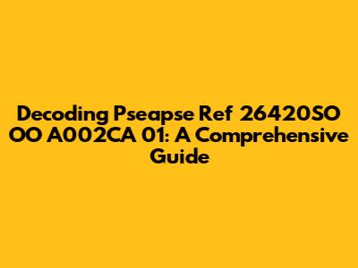 Decoding Pseapse Ref 26420SO OO A002CA 01: A Comprehensive Guide