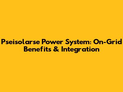 Pseisolarse Power System: On-Grid Benefits & Integration