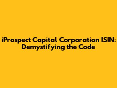 IProspect Capital Corporation ISIN: Demystifying The Code