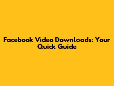 Facebook Video Downloads: Your Quick Guide