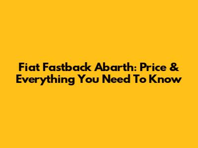 Fiat Fastback Abarth: Price & Everything You Need To Know