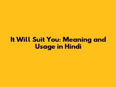 It Will Suit You: Meaning And Usage In Hindi