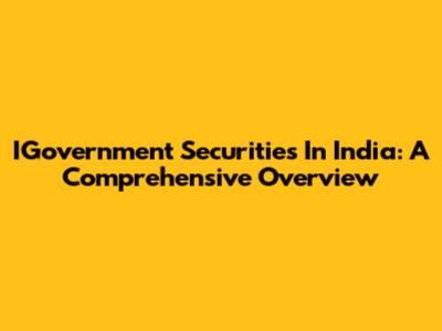 IGovernment Securities In India: A Comprehensive Overview