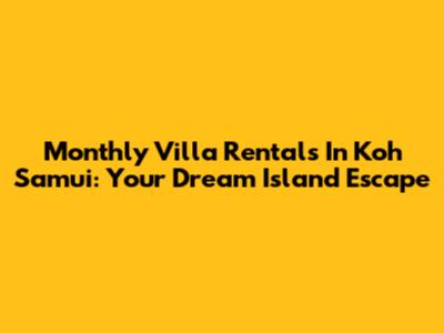 Monthly Villa Rentals In Koh Samui: Your Dream Island Escape