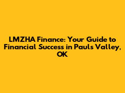 Hey guys, let's dive into something super important: LMZHA Finance and how it can help you rock your financial goals in Pauls Valley, Oklahoma! Navigating the world of finance can sometimes feel like trying to solve a Rubik's Cube blindfolded, but don't worry, we're here to break it down. We'll explore what LMZHA Finance is all about, how it can benefit you, and some crucial tips to keep you on the right track. Buckle up, because we're about to make finance fun and accessible!