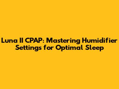 Q: What is the ideal humidity setting for my Luna II CPAP machine? A: The ideal setting varies from person to person. Start with a setting of 2 or 3 and adjust it based on your comfort level and the environment you sleep in. If you experience dryness, increase the setting. If you experience rainout, decrease the setting.