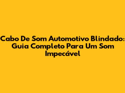 Cabo De Som Automotivo Blindado: Guia Completo Para Um Som Impecável