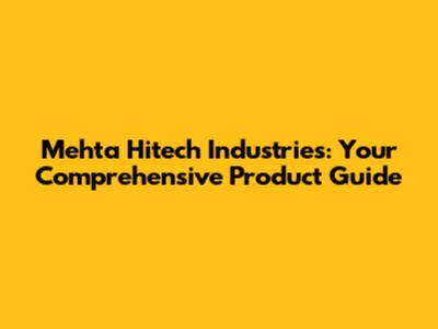 Mehta Hitech Industries: Your Comprehensive Product Guide