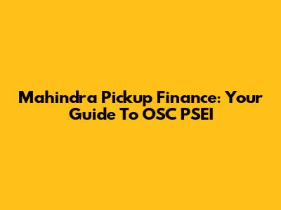Mahindra Pickup Finance: Your Guide To OSC PSEI