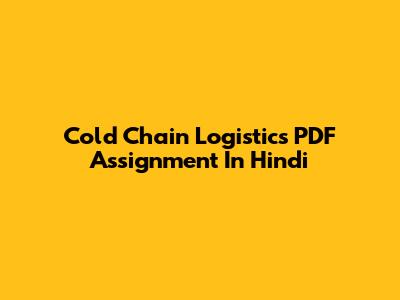 Cold Chain Logistics PDF Assignment In Hindi