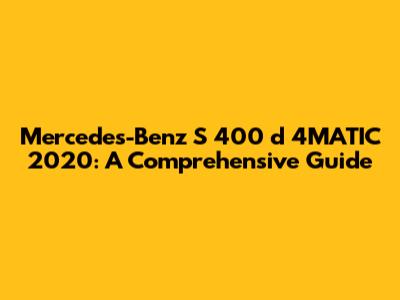 Hey there, car enthusiasts! Let's dive deep into the Mercedes-Benz S 400 d 4MATIC 2020, a vehicle that perfectly blends luxury, performance, and cutting-edge technology. This guide will provide you with everything you need to know about this exceptional car, from its key features and specifications to its performance and driving experience. Get ready to explore the world of the S 400 d 4MATIC!