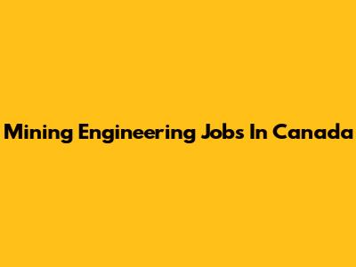Mining Engineering Jobs In Canada
