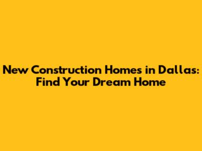 New Construction Homes In Dallas: Find Your Dream Home