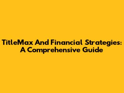 TitleMax And Financial Strategies: A Comprehensive Guide