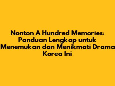 Hai, guys! Kalian penasaran banget kan di mana kalian bisa nonton drama Korea yang lagi nge-hits, "A Hundred Memories"? Tenang, kalian nggak sendirian! Drama ini emang seru banget dan banyak dicari tahu tempat nontonnya. Nah, di artikel ini, kita bakal kupas tuntas semua informasi yang kalian butuhkan. Mulai dari platform streaming resmi yang menayangkan drama ini, sampai cara-cara mudah buat nontonnya. Jadi, siap-siap ya, karena kita bakal menyelami dunia "A Hundred Memories" bareng-bareng!