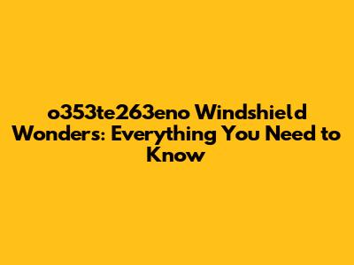 Maintaining Your o353te263eno Windshield: Tips and Tricks