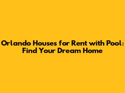 Orlando Houses For Rent With Pool: Find Your Dream Home