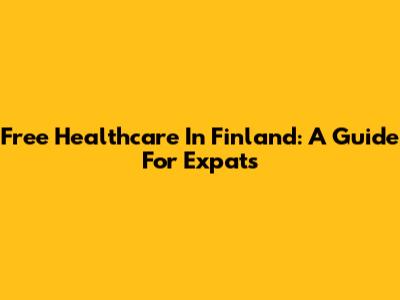 Free Healthcare In Finland: A Guide For Expats
