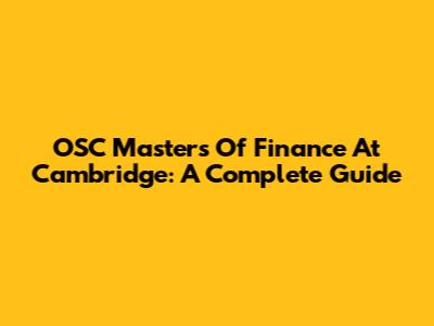 OSC Masters Of Finance At Cambridge: A Complete Guide