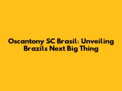 Welcome to Oscantony SC Brasil: A Phenomenon Worth Exploring