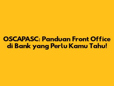 Hi guys! Pernahkah kamu bertanya-tanya tentang apa itu OSCAPASC dan bagaimana perannya di dunia perbankan? Nah, artikel ini akan mengupas tuntas tentang OSCAPASC, khususnya dalam konteks front office di bank. Kita akan membahas secara detail, mulai dari pengertian, fungsi, hingga tips penting yang perlu kamu ketahui. Jadi, siapkan diri untuk menyelami dunia perbankan yang menarik ini!