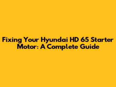 Fixing Your Hyundai HD 65 Starter Motor: A Complete Guide