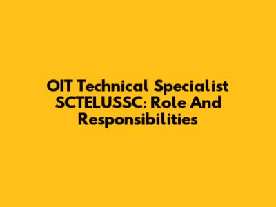 OIT Technical Specialist SCTELUSSC: Role And Responsibilities