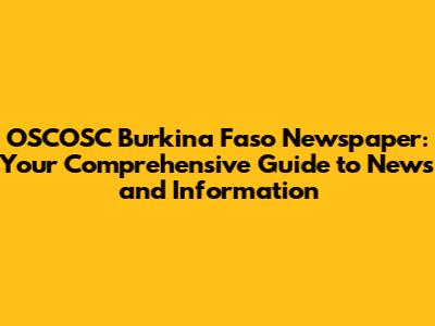OSCOSC Burkina Faso Newspaper: News, Updates, And Insights