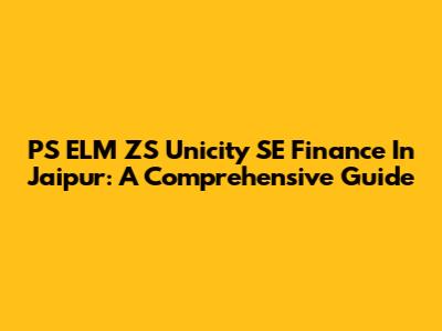 PS ELM ZS Unicity SE Finance In Jaipur: A Comprehensive Guide