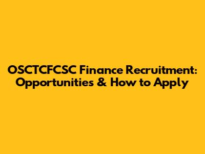 OSCTCFCSC Finance Recruitment: Opportunities & How To Apply