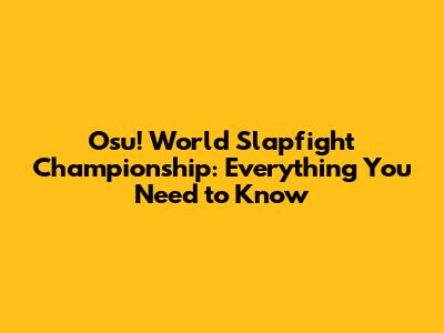 Hey osu! fans! Ever heard of the Osu! World Slapfight Championship? If not, buckle up because you're in for a wild ride! This article dives deep into everything you need to know about this unique and quirky osu! event. So, let's get started and explore what makes the Osu! World Slapfight Championship so special.